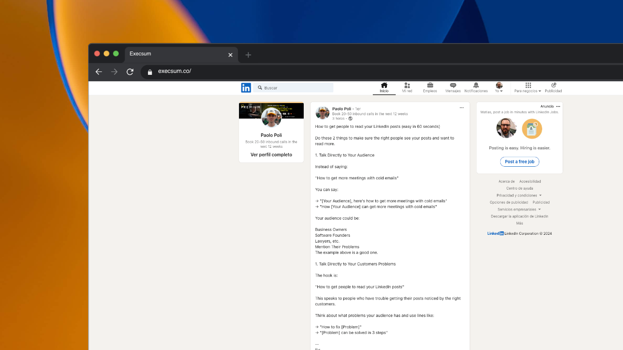 Nuestro programa estándar dura 12 semanas. Durante este período, diseñamos el funnel, lo implementamos y te enseñamos a ejecutarlo. Este plazo nos permite crear una estrategia sólida, desarrollar el contenido necesario, configurar las herramientas adecuadas y realizar las pruebas pertinentes para asegurar su efectividad.